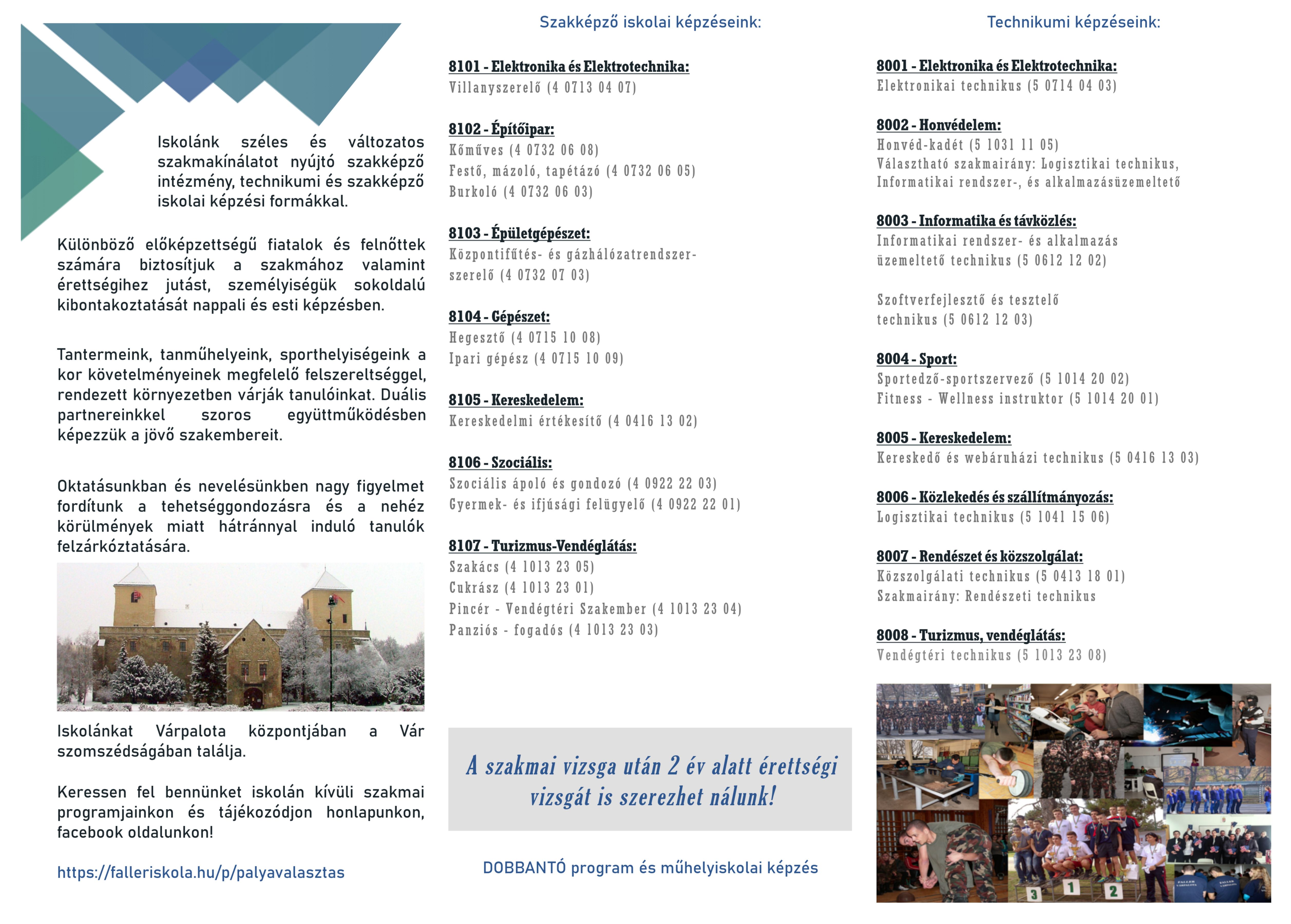Szakmáinkat megismerheti az alábbi oldalon: Technikumi és szakképző iskolai oktatás
